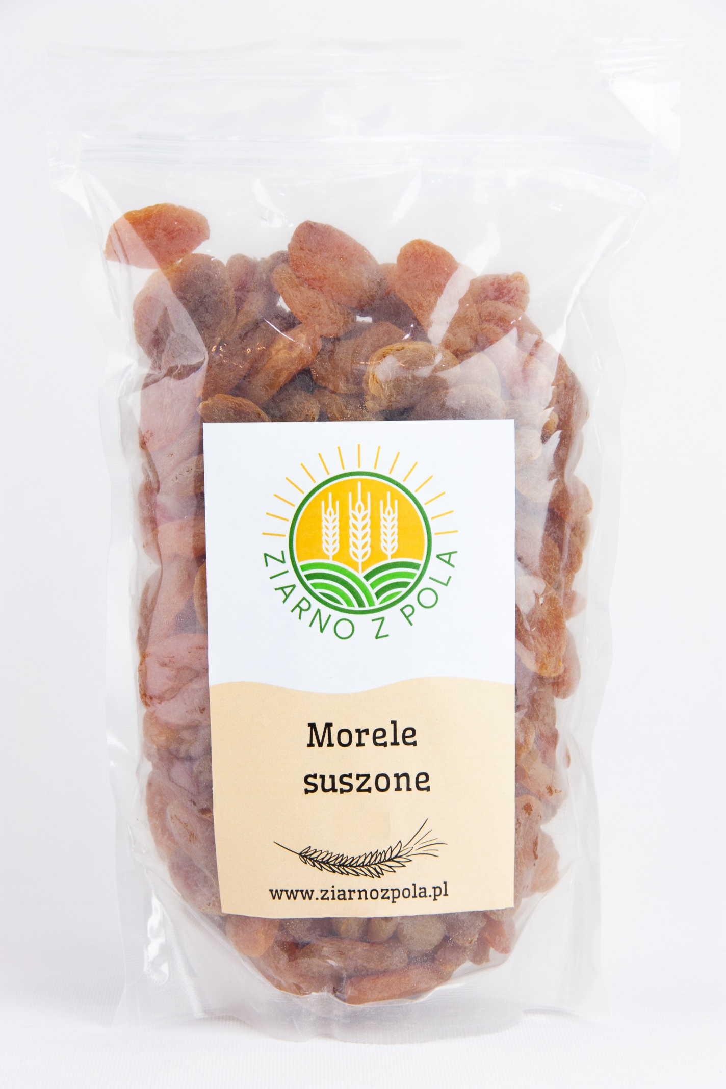 Morele są pakowane w grubych torebkach strunowych, pozwalające na wielokrotne otwieranie i zamykanie.